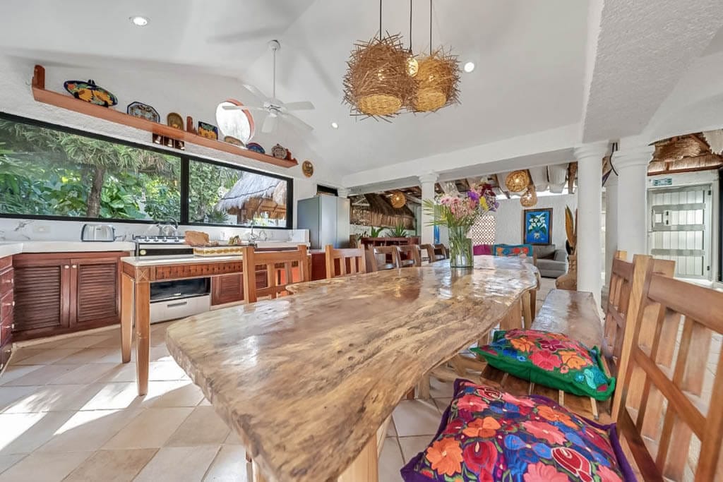 Step inside, and you’ll find a spacious living room, dining area, and a kitchen equipped for whipping up meals from quick snacks to gourmet feasts. Each room is bathed in charm, adorned with Mexican touches that feel just like home.