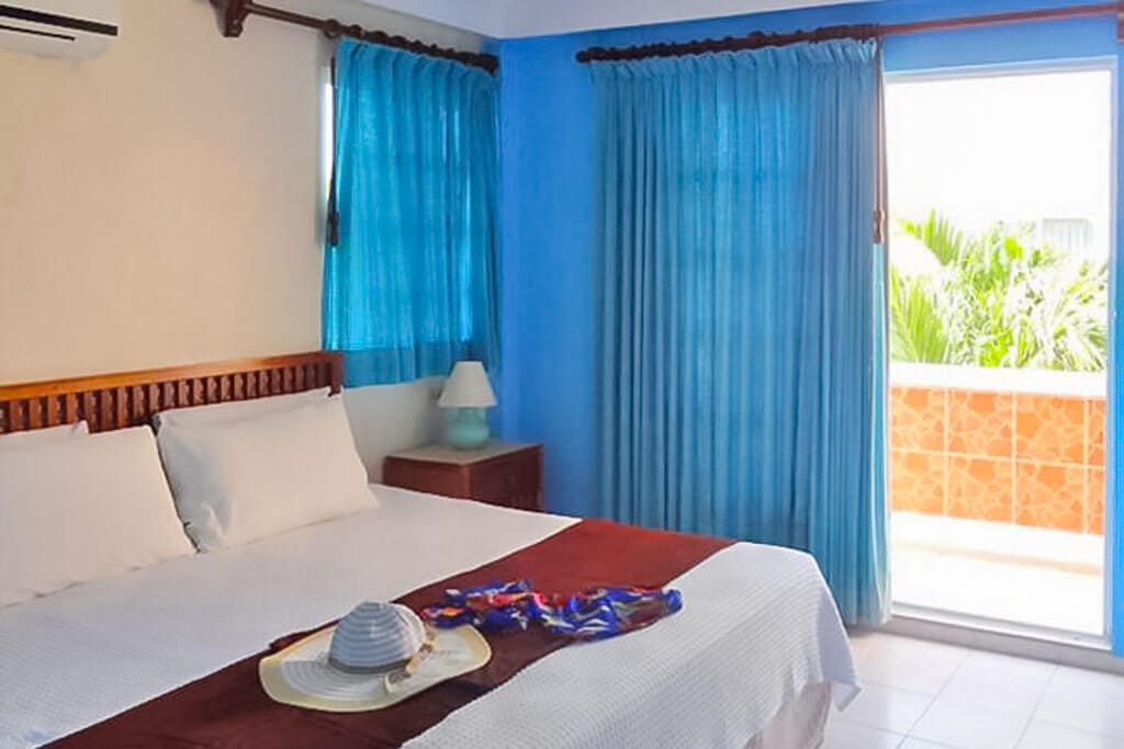 With its classic Mexican Caribbean design, the hotel features a central courtyard adorned with balconies, each offering a seating area for every room. And if you’re in the mood for breathtaking views, head up to the roof terrace, where panoramic vistas await, whether you’re chasing the sunrise or basking in the glow of the sunset.