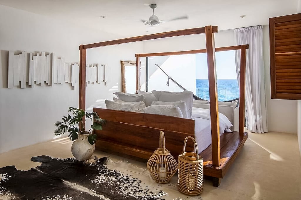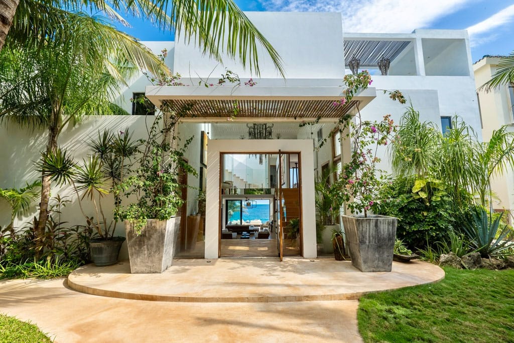 If you’re dreaming of a luxury oceanfront villa on Isla Mujeres that looks straight out of a design magazine but somehow still feels cozy, Zyanya is your girl. This 4-bedroom Punta Sur stunner (expandable to 6 bedrooms with the private guest house) is the kind of place where you walk down the garden path, see the Caribbean framed perfectly through the insanely cool glass front door, and instantly think, “Oh… this is going to be amazing.”