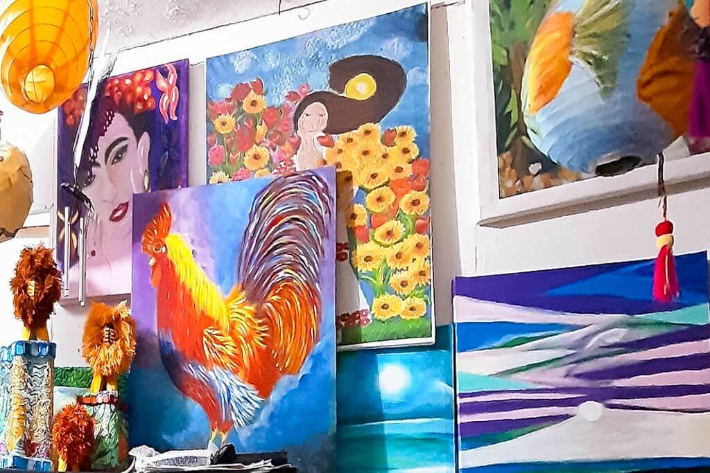 The gallery bursts with vibrant colors, each piece showcasing Yadis’ immense talent and passion. Available for purchase, her artworks beautifully capture the essence of Isla Mujeres and its rich culture.
